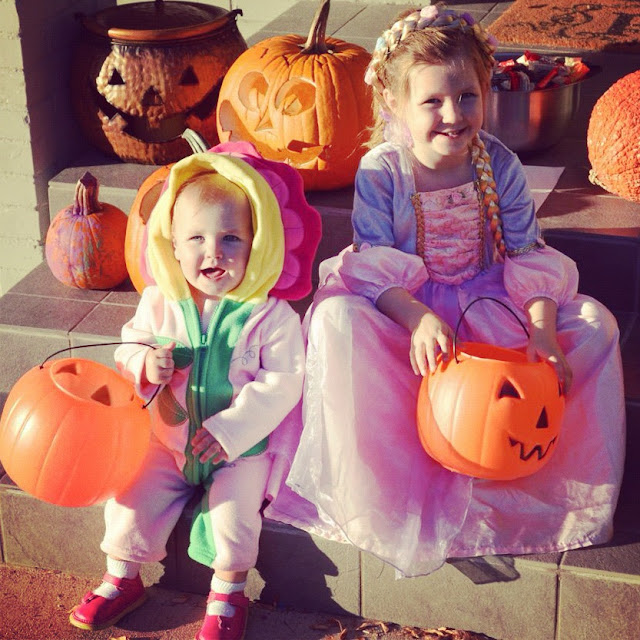 Rapunzel and her magic flower were ready to rock and roll tonight. We joined the kids from our block to hit the neighborhood trick or treating scene. It was a BLAST! Mollie was in her element gathering candy and Kendall had fun toddling around the busy streets. Seriously, this is one of the best holidays with kids this age. I am still glowing from watching these kiddos take over the neighborhood with their friends!